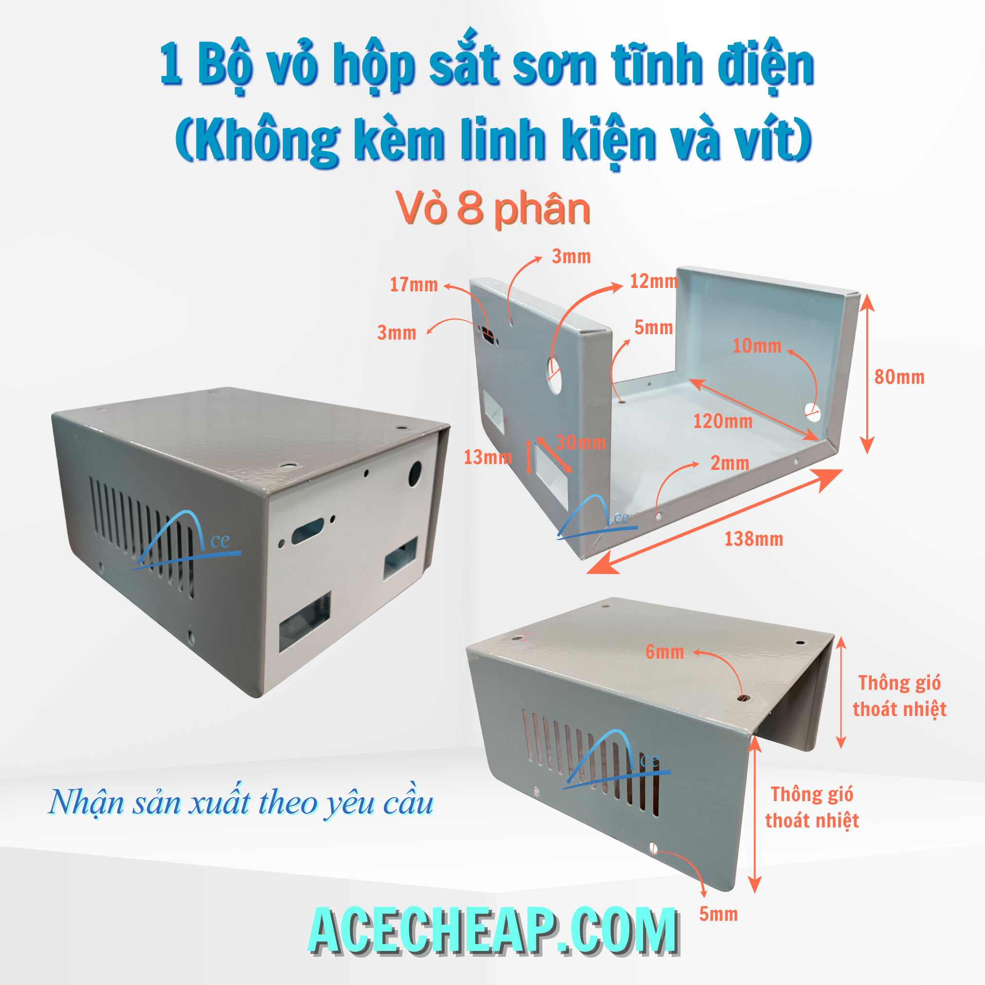 1 Bộ vỏ hộp sắt sơn tĩnh điện (Không kèm linh kiện và vít) Vỏ 8 Phân