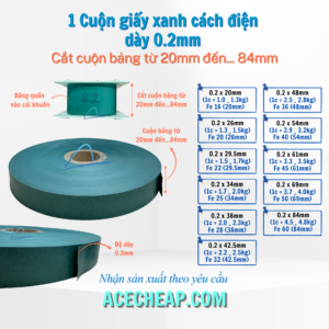 1 Cuộn giấy xanh cách điện dày 0.1mm và 0.2mm cắt cuộn bảng từ 20mm đến … 84mm