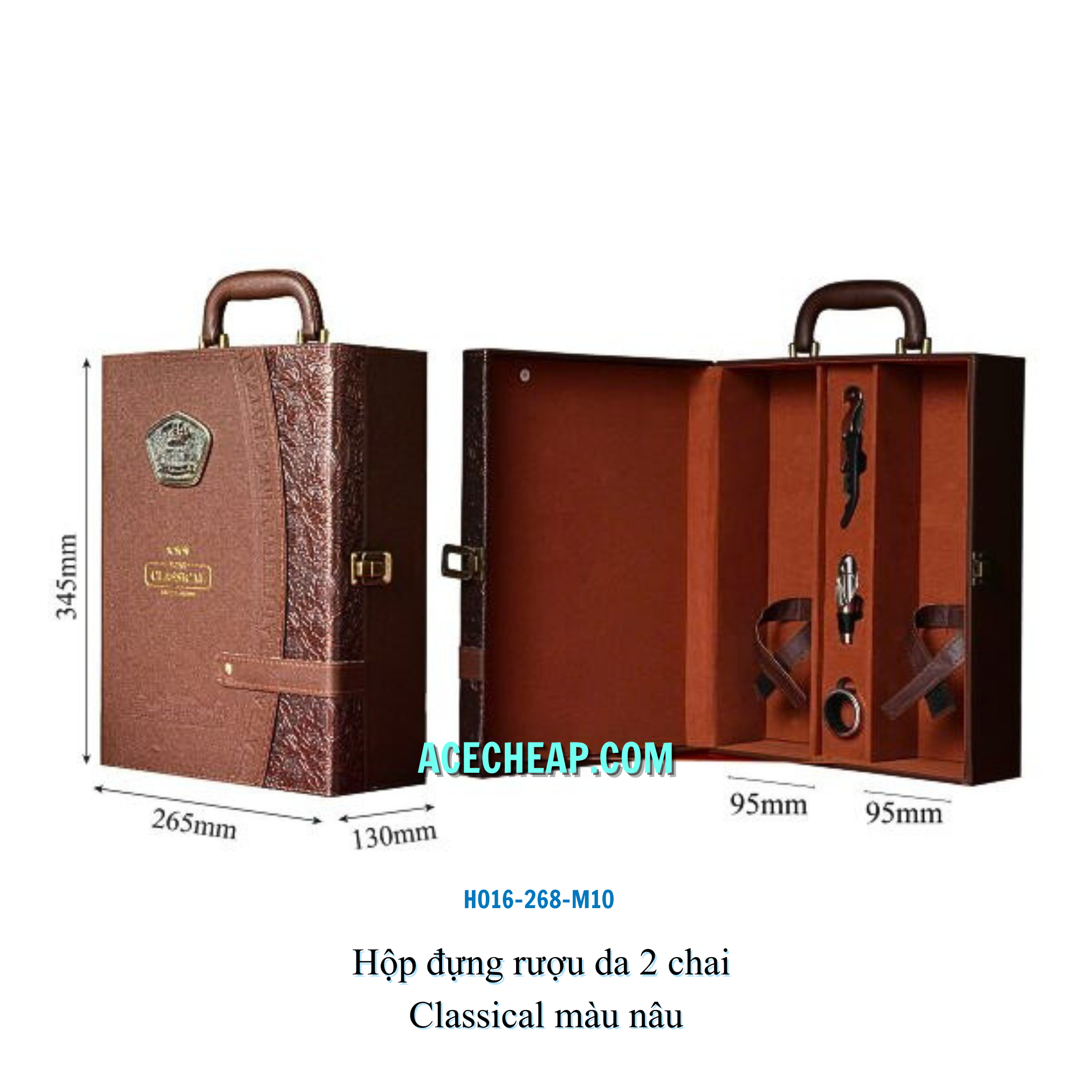 Hộp đựng rượu da 2 chai Classical màu nâu HO16-268-M10