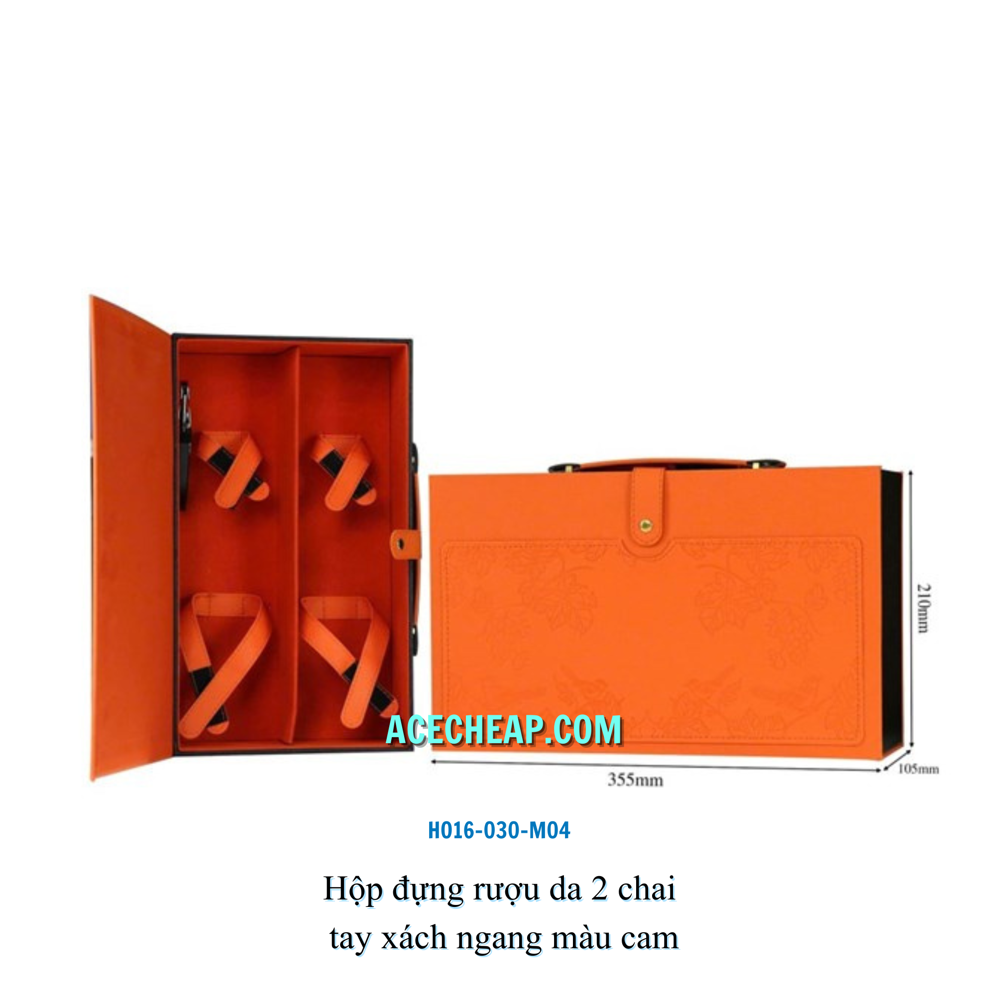 Hộp đựng rượu da 2 chai tay xách ngang màu cam HO16-030-M04