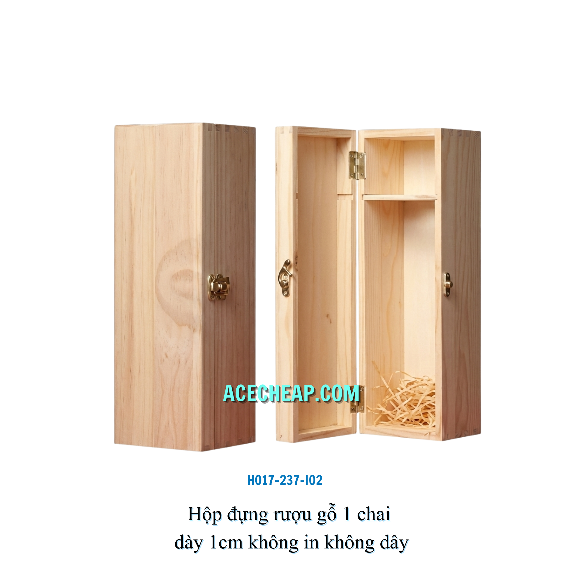 Hộp đựng rượu gỗ 1 chai dày 1cm không in không dây HO17-237-I02