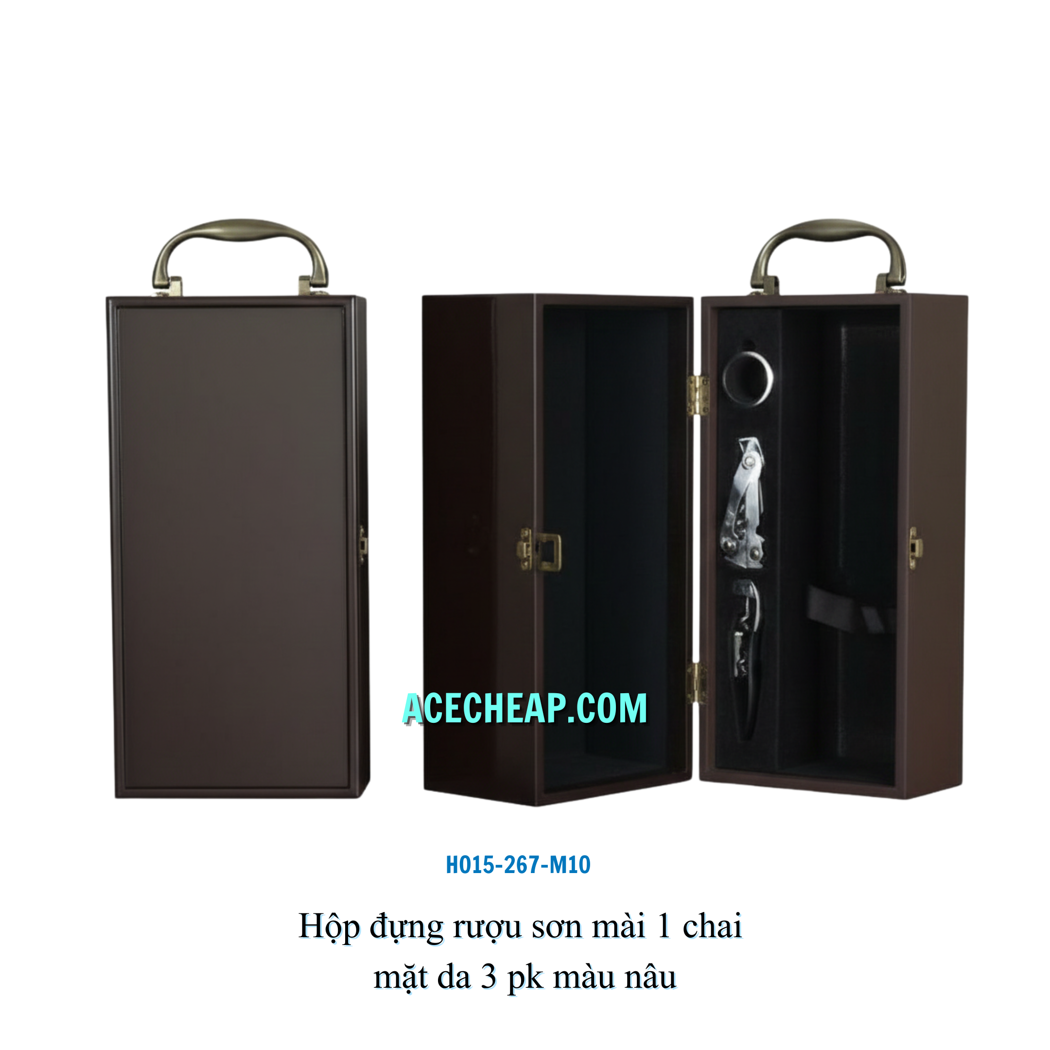 Hộp đựng rượu sơn mài 1 chai mặt da 3 pk màu nâu HO15-267-M10