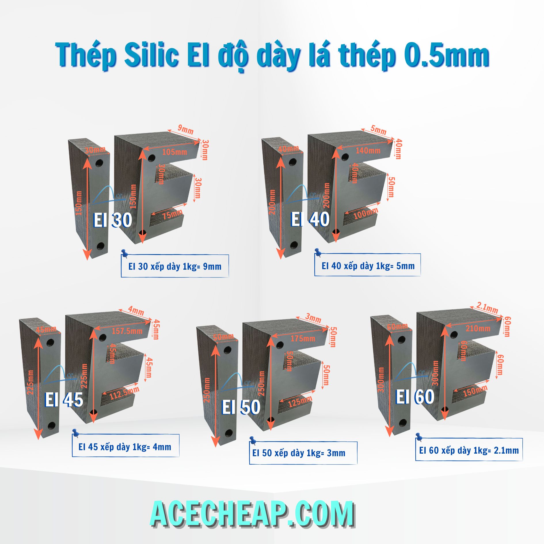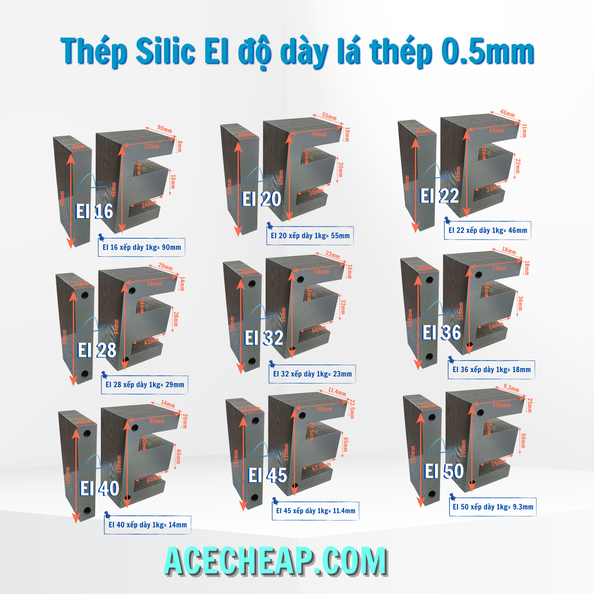 • Đơn vị tính: Kg [Bán theo Kg hoặc bán theo bộ (1 bộ bao gồm: Khuôn nhựa, EI, Ốp kẹp (Áo hoặc Bát hoặc Bản lề) và Bulong/Cây ti + Tán (nếu FE có lỗ))]