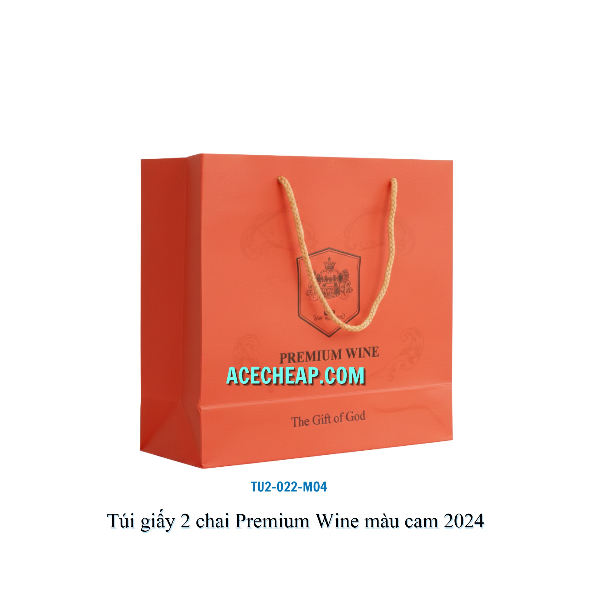 Túi giấy 2 chai Premium Wine màu cam 2024 TU2-022-M04